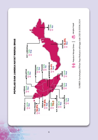 SUMBER: Suruhanjaya Pilihan Raya Malaysia sehingga Julai 2025 & DOSM, 2024Populasi Warga EmasJangka HayatPOPULASI DAN JANGKA HAYAT WARGA EMAS6